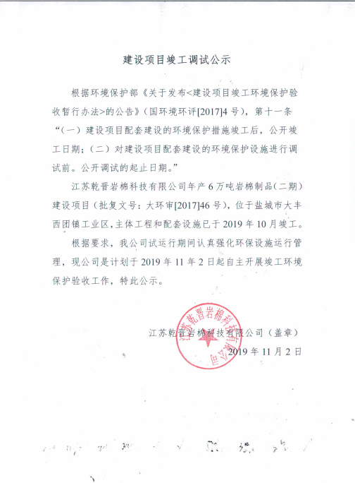 建設項目竣工調試(shì)公示